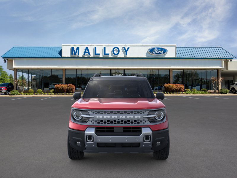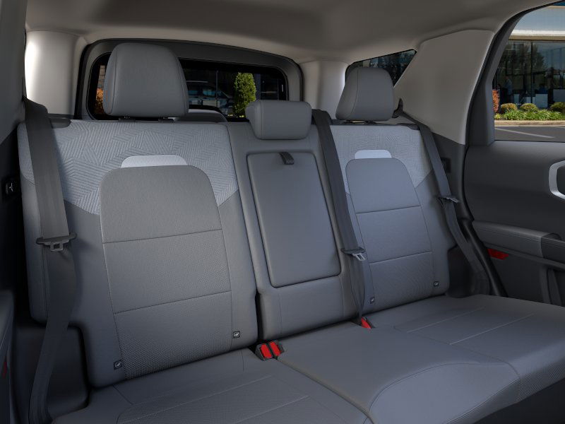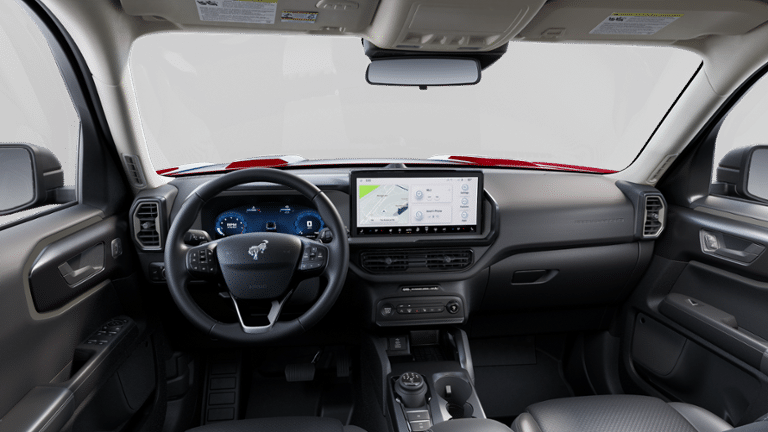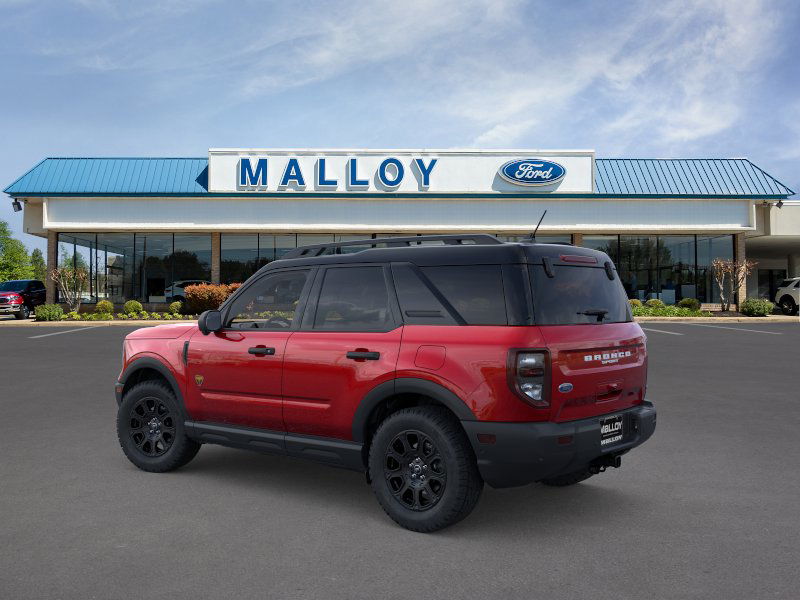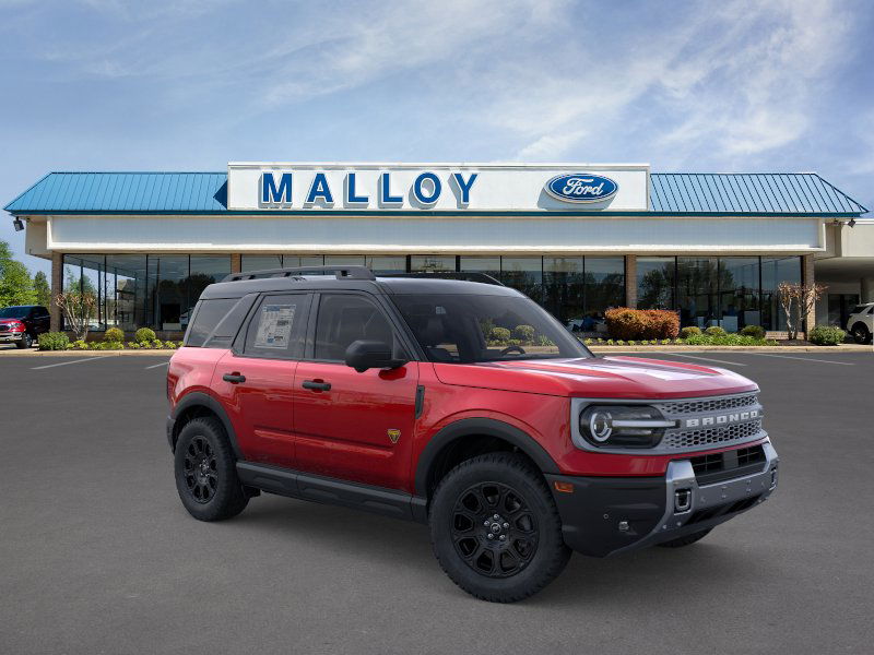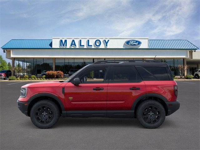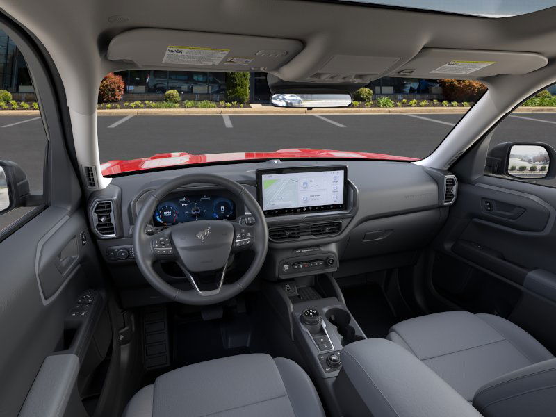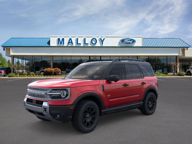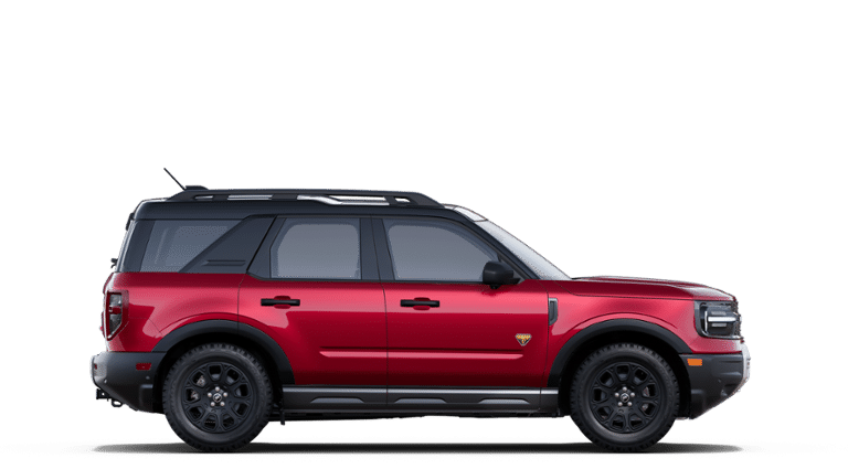Badlands Tech Package (B&O Sound System by Bang & Olufsen, Connected Navigation, and HD Radio), Equipment Group 400A, 4-Wheel Disc Brakes, 6 Speakers, ABS brakes, Air Conditioning, Alloy wheels, AM/FM radio: SiriusXM, AM/FM Stereo, Auto High-beam Headlights, Auto-dimming Rear-View mirror, Automatic temperature control, Brake assist, Compass, Delay-off headlights, Driver door bin, Driver vanity mirror, Dual front impact airbags, Dual front side impact airbags, Electronic Stability Control, Emergency communication system: SYNC 4 911 Assist, Four wheel independent suspension, Front anti-roll bar, Front Bucket Seats, Front Center Armrest, Front fog lights, Front License Plate Bracket, Front reading lights, Fully automatic headlights, Garage door transmitter, Heated door mirrors, Heated front seats, Heated steering wheel, Illuminated entry, Knee airbag, Leather Trimmed Front Bucket Seats, Low tire pressure warning, Memory seat, Occupant sensing airbag, Outside temperature display, Overhead airbag, Overhead console, Panic alarm, Passenger door bin, Passenger vanity mirror, Power door mirrors, Power driver seat, Power Moonroof, Power passenger seat, Power steering, Power windows, Radio data system, Rear anti-roll bar, Rear reading lights, Rear seat center armrest, Rear window defroster, Rear window wiper, Remote keyless entry, Security system, SiriusXM, Speed control, Speed-sensing steering, Speed-Sensitive Wipers, Split folding rear seat, Steering wheel mounted audio controls, SYNC 4 w/Enhanced Voice Recognition, Tachometer, Telescoping steering wheel, Tilt steering wheel, Traction control, Trip computer, Variably intermittent wipers, and Wheels: 17" Matte Black-Painted Aluminum. 2025 Ford Bronco Sport EcoBoost 2.0L I4 GTDi DOHC Turbocharged VCT Ruby Red Metallic Tinted Clearcoat